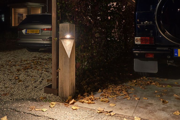 Deze boom van een lamp is de middelste van de Oak familie. Elk lid van deze familie heeft een landelijk en robuust design. Omdat ze met de hand vervaardigd worden is elk exemplaar uniek. De staander is gemaakt van inheems, onbehandeld eikenhout en voorzien van een diamantkop. Door het slimme ontwerp is de ledverlichting niet direct in het zicht waardoor u niet verblind raakt. Als lichtbron is de Sus Mini Sun+ 24V gebruikt en met een score van IP67 en IK06 is deze lamp stofdicht, waterbestendig en kan het tegen een stootje. De Sus Oak 24V heeft 1 ledlamp, een lichtbereik van 50 cm en een straalhoek van 100°. De afmetingen zijn 80 cm hoog, 12 cm breed en 12 cm diep. De kabel is verwerkt in een van onderuit geboorde doorgang, zodat je aan de buitenkant van de lamp geen kabels ziet. De Sus Oak 24V is zo voorbereid dat deze, indien gewenst, te plaatsen is op een prefab betonvloer. Aansluiten van deze staande buitenledlamp gaat via het 24 Volt kabelsysteem.